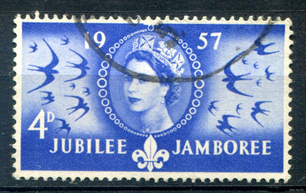 Великобритания - 1957г. - 50 лет скаутскому движению, королева Елизавета II - 1 марка - гашёная [Mi 300]. #3-GB-89-C-1