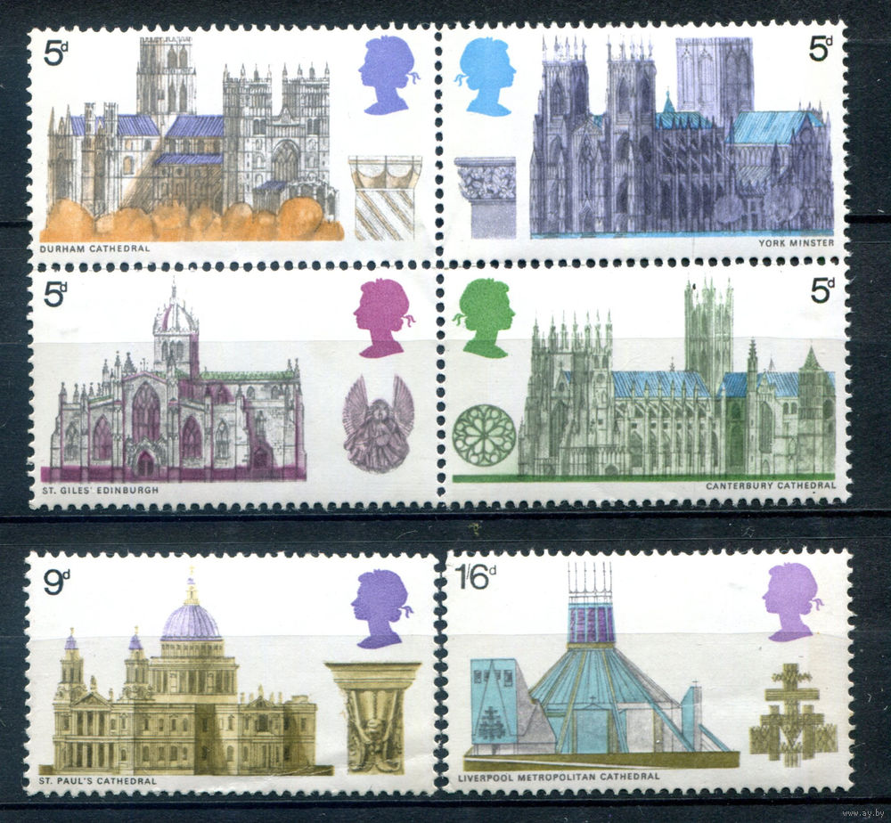 Великобритания - 1969г. - архитектура - 6 марок - полная серия, MNH, есть вмятины, небольшие повреждения клея, пятна на клее [Mi 516-521]. #3-GB-93-A-2