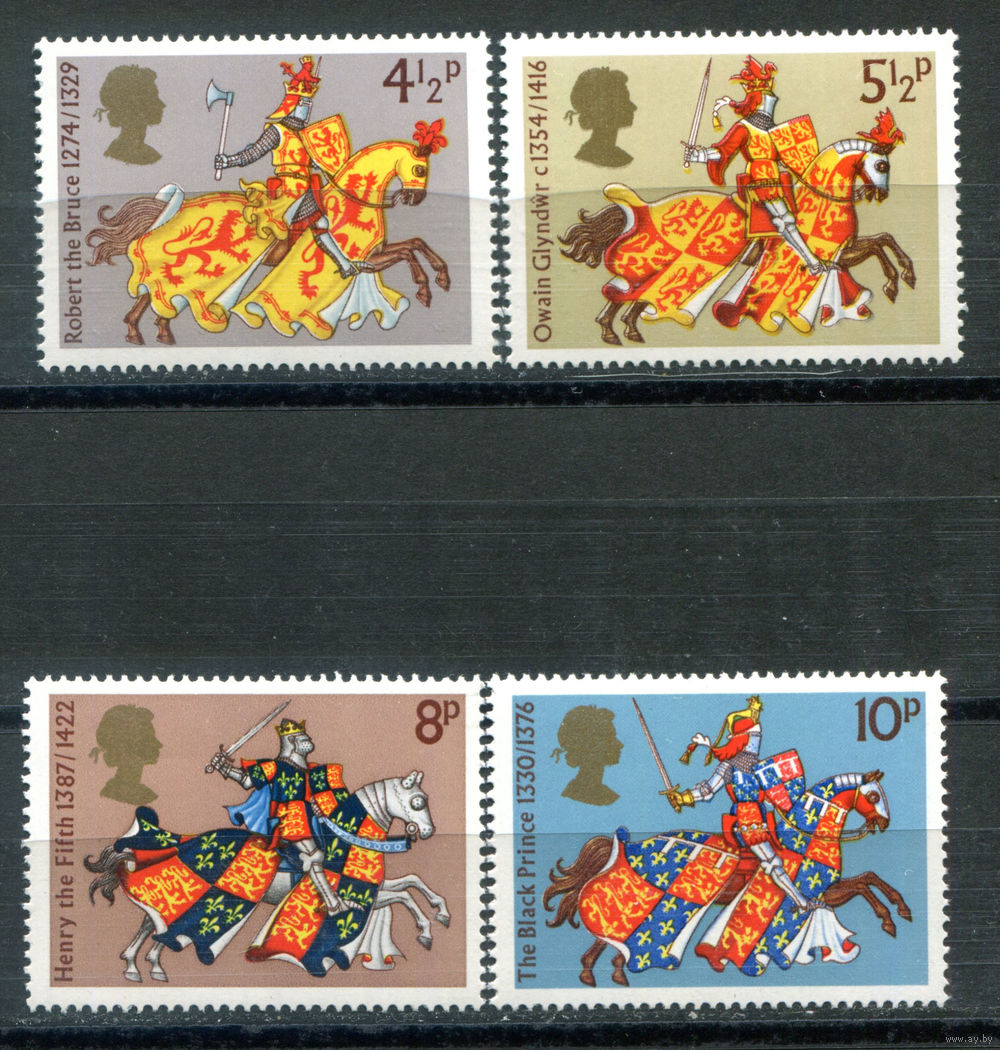 Великобритания - 1974г. - королевские всадники средневековья - 4 марки - полная серия, MNH [Mi 654-657]. #3-GB-Z-1-6