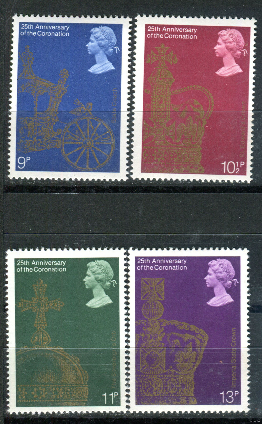 Великобритания - 1978г. - 25 лет коронации королевы Елезаветы II - 4 марки - полная серия, MNH, 1 марка с маленькой потёртостью на клее [Mi 765-768]. #3-GB-Z-1-9