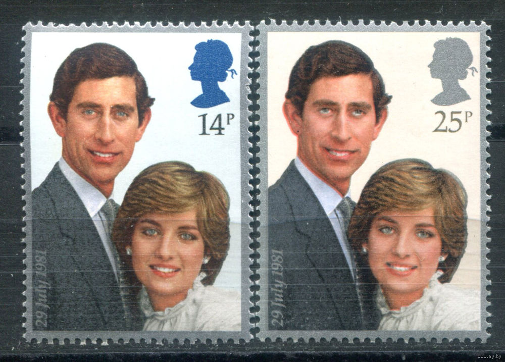 Великобритания - 1981г. - свадьба принца Чарльза и леди Дианы Спенсер - 2 марки - полная серия, MNH [Mi 884-885]. #3-GB-Z-1-10