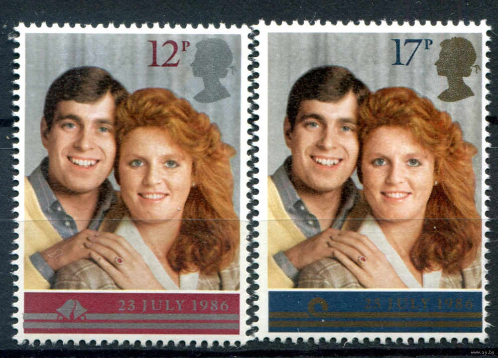 Великобритания - 1986г. - свадьба принца Эндрю и Сары Фергюсон - 2 марки - полная серия, MNH [Mi 1081-1082]. #3-GB-Z-1-16