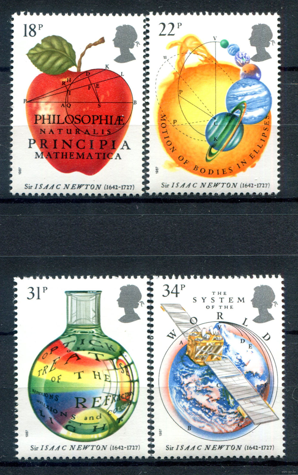 Великобритания - 1987г. - 300 лет труду Исаака Ньютона Математические начала натуральной философии - 4 марки - полная серия, MNH [Mi 1101-1104]. #3-GB-Z-1-17
