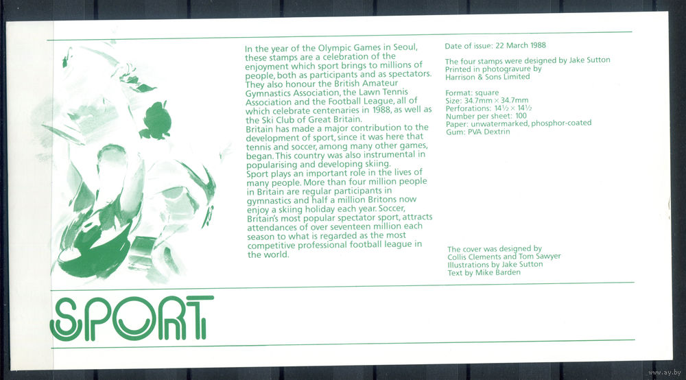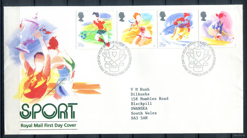 Великобритания - 1988г. - спорт - 1 конверт с гашением первого дня (FDC) и информационным буклетом - полная серия [Mi 1143-1146]. #3-GB-93-CP-7