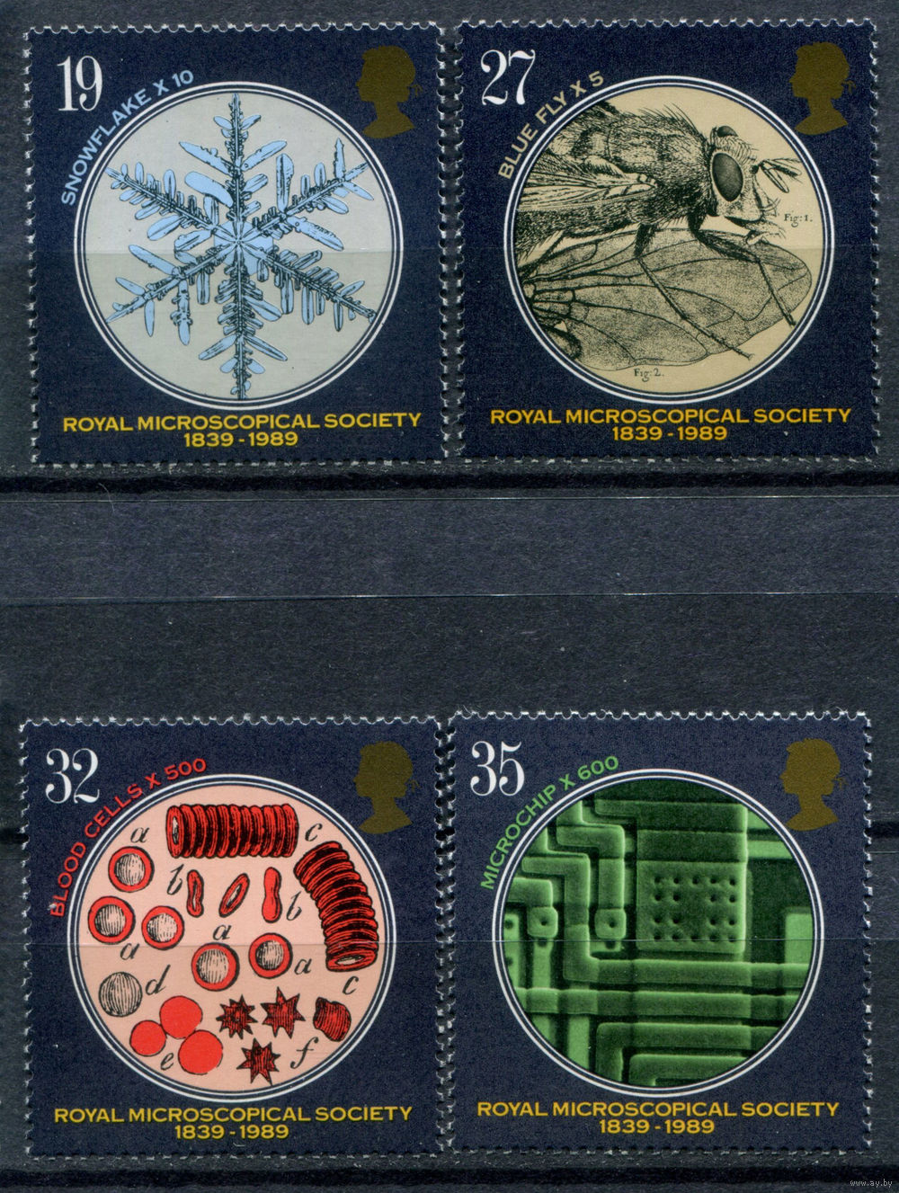 Великобритания - 1989г. - 150 лет королевскому обществу микроскопистов - 4 марки - полная серия, MNH [Mi 1218-1221]. #3-GB-Z-1-21