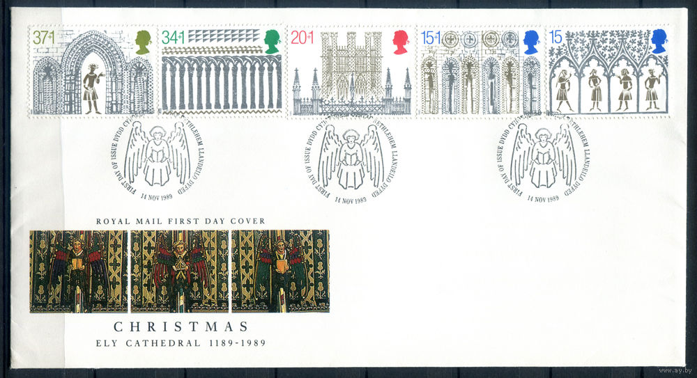 ![Великобритания - 1989г. - Рождество, кафедральный собор - 1 конверт с гашением первого дня (FDC) и информационным буклетом - полная серия [Mi 1235-1239]. #3-GB-99-CP-23](https://s4-lot.aystatic.by/550x510/136/252/5040/5040252136_0.jpg)