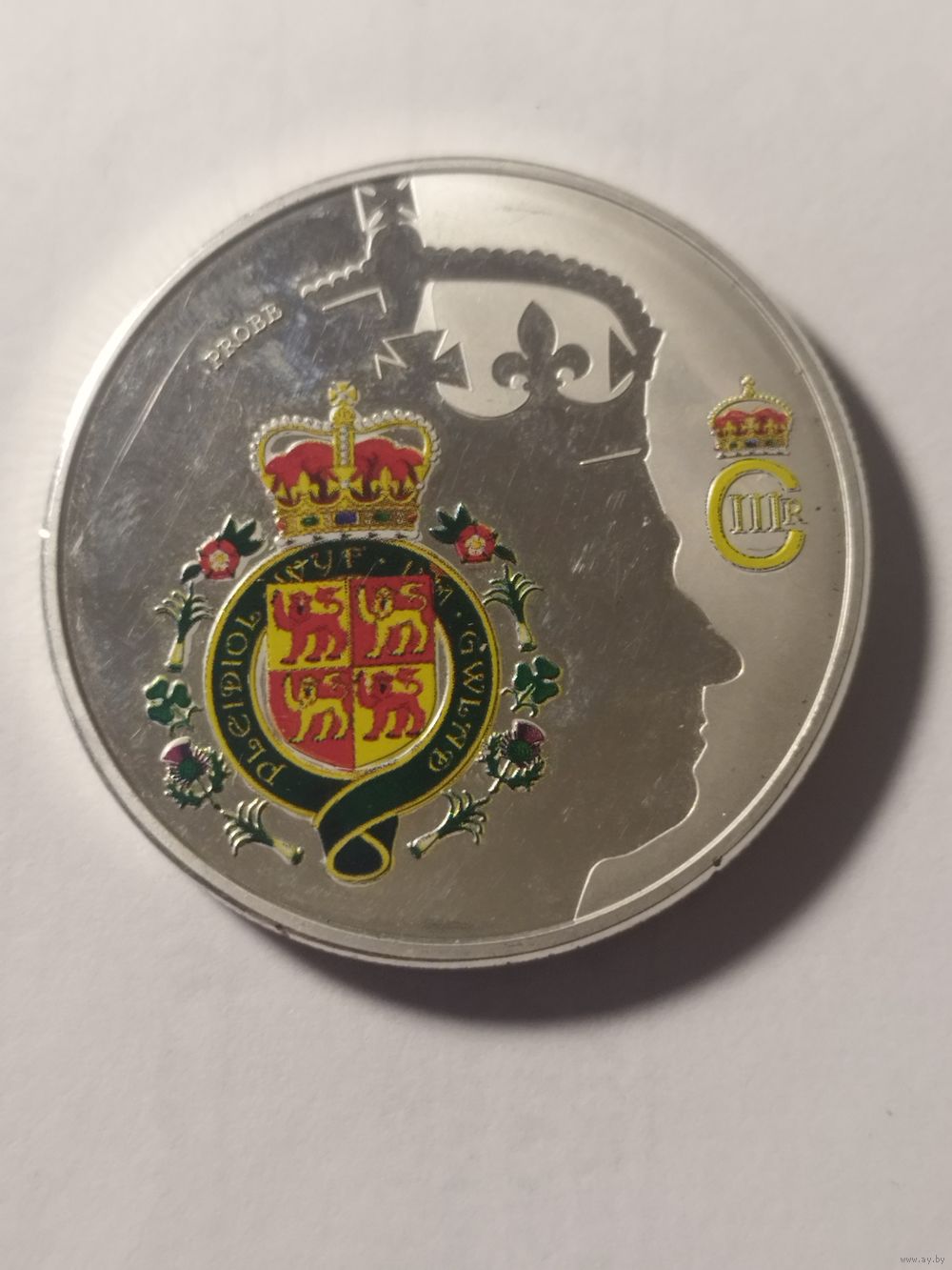Великобритания 2 фунта стерлингов "Milvus milvus" посеребреные с частичной окраской вес 32 гр.