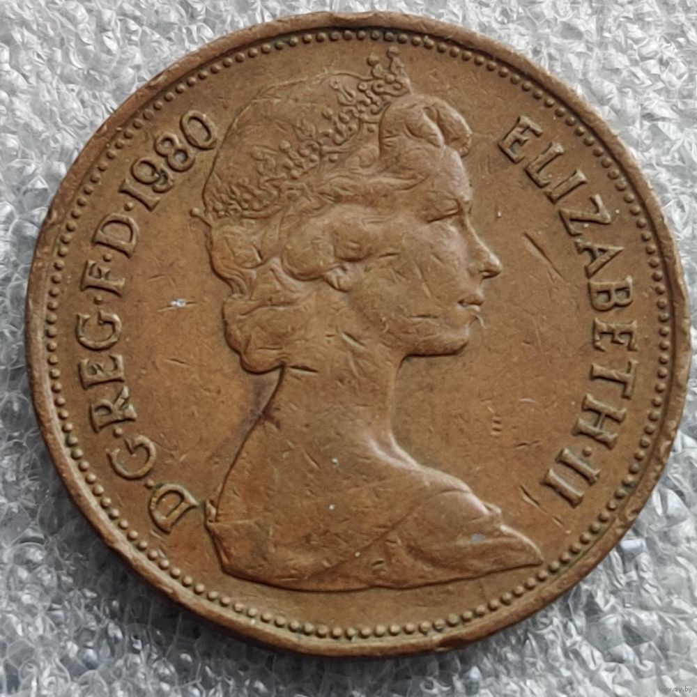 Номер KM # 916 Страна Великобритания Период Королева Елизавета II (1968 - 1981) Правитель Елизавета II Валюта Фунт стерлингов Вид чекана Регулярный чекан Номинал 2 новых пенса Год 1971 - 1981 Гурт Гладкий Форма Круг Отношение авс/рев Медальное (0°) Материал Бронза Вес (g) 7,12 Диаметр (mm) 25,91 Толщина (mm) 1,85