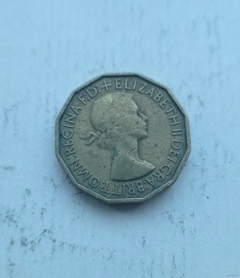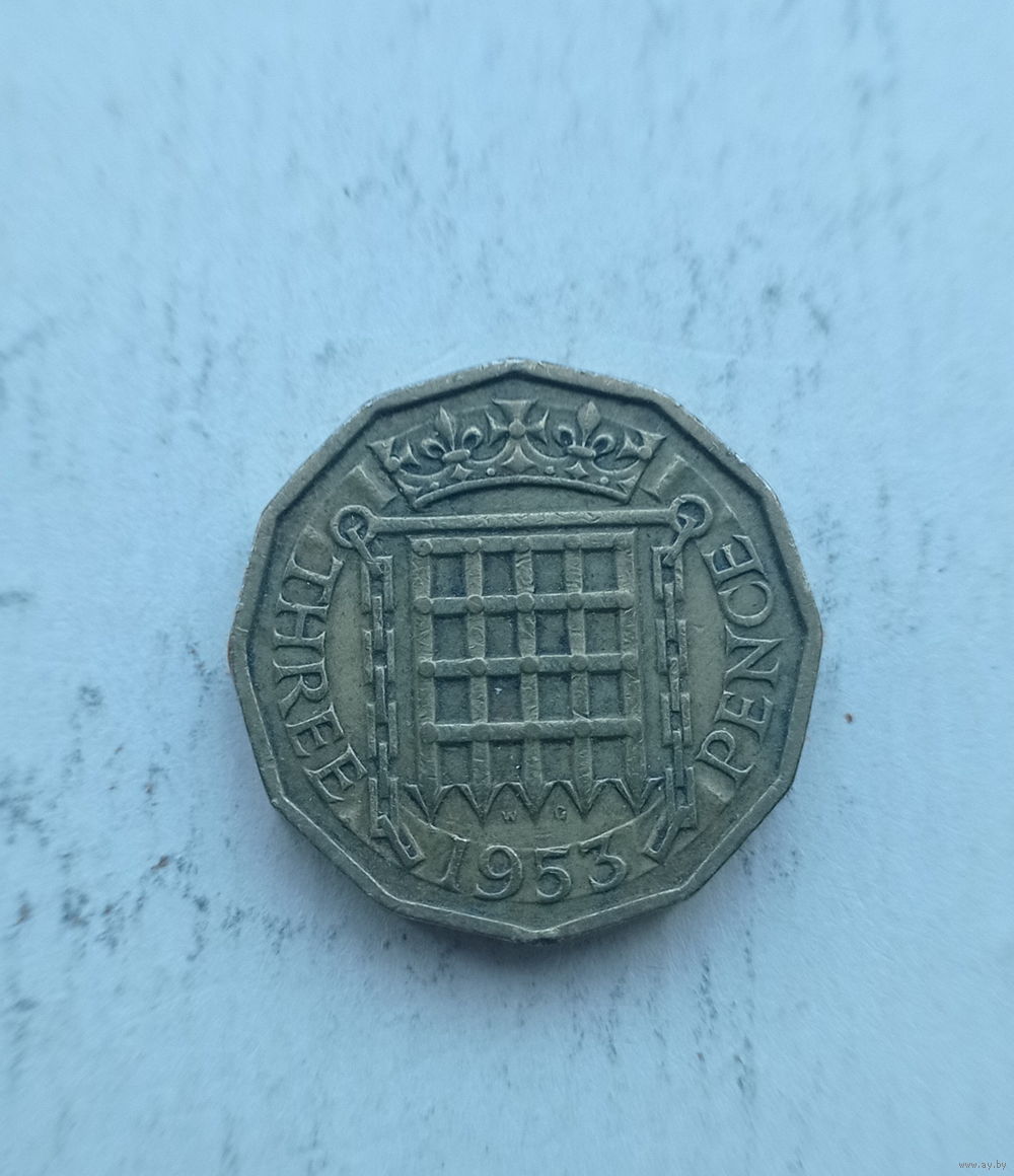 Великобритания 3 пенса 1953 год коронация Елизаветы II длинная надпись в легенде