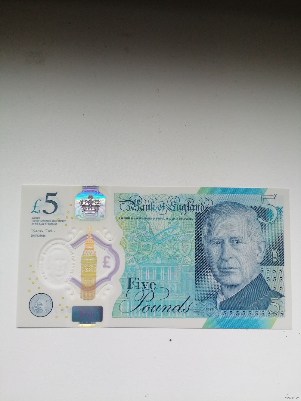Великобритания 5 Чарльз 3. UNC полимер с рубля