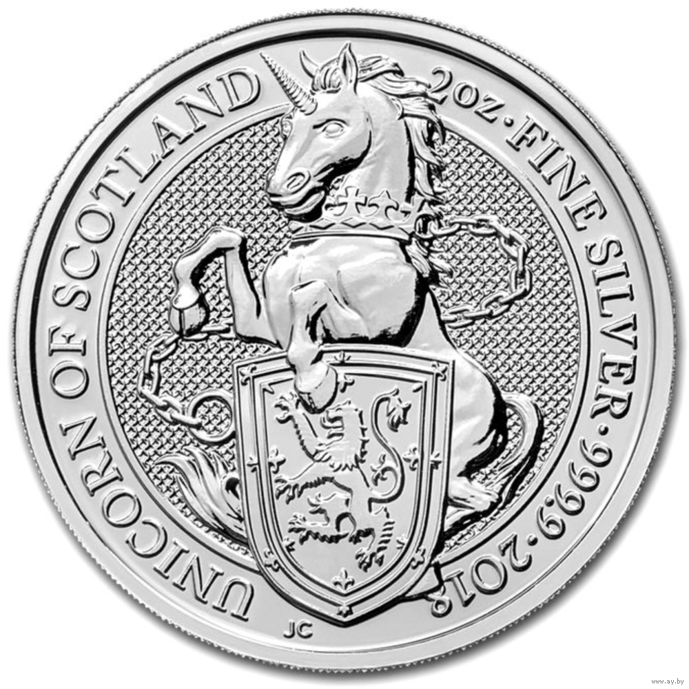 4 выпуск в серии Звери королевы. Unicorn Silver Queen's Beasts Great Britain 2 oz, 2018 Единорог.