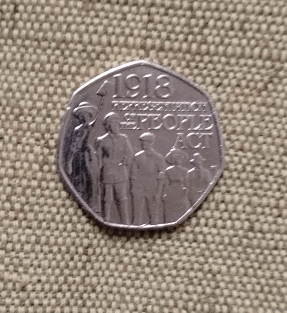 Великобритания 50 пенсов, 2018 100 лет представлению Закона о народе