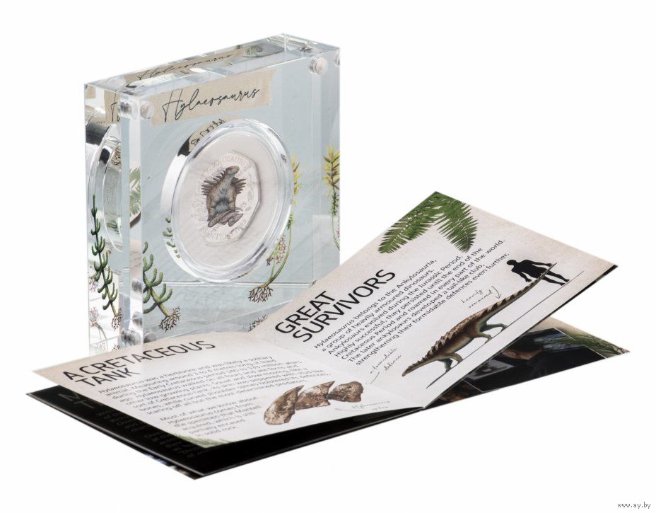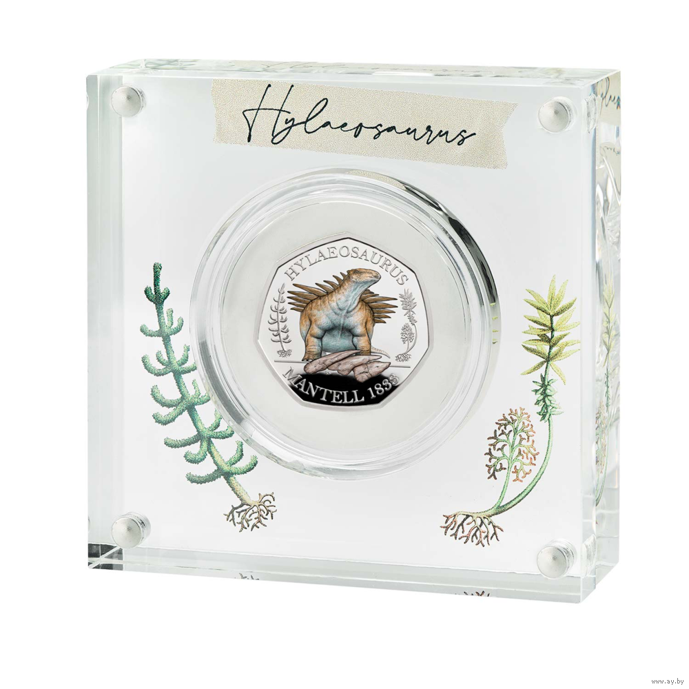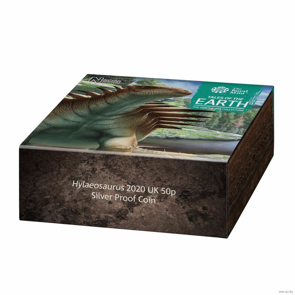 Великобритания 50 пенсов 2020г. "Динозавр: Hylaeosaurus". Монета в капсуле; магнитном подарочном акриловом футляре; номерной сертификат; коробка. СЕРЕБРО 8гр.