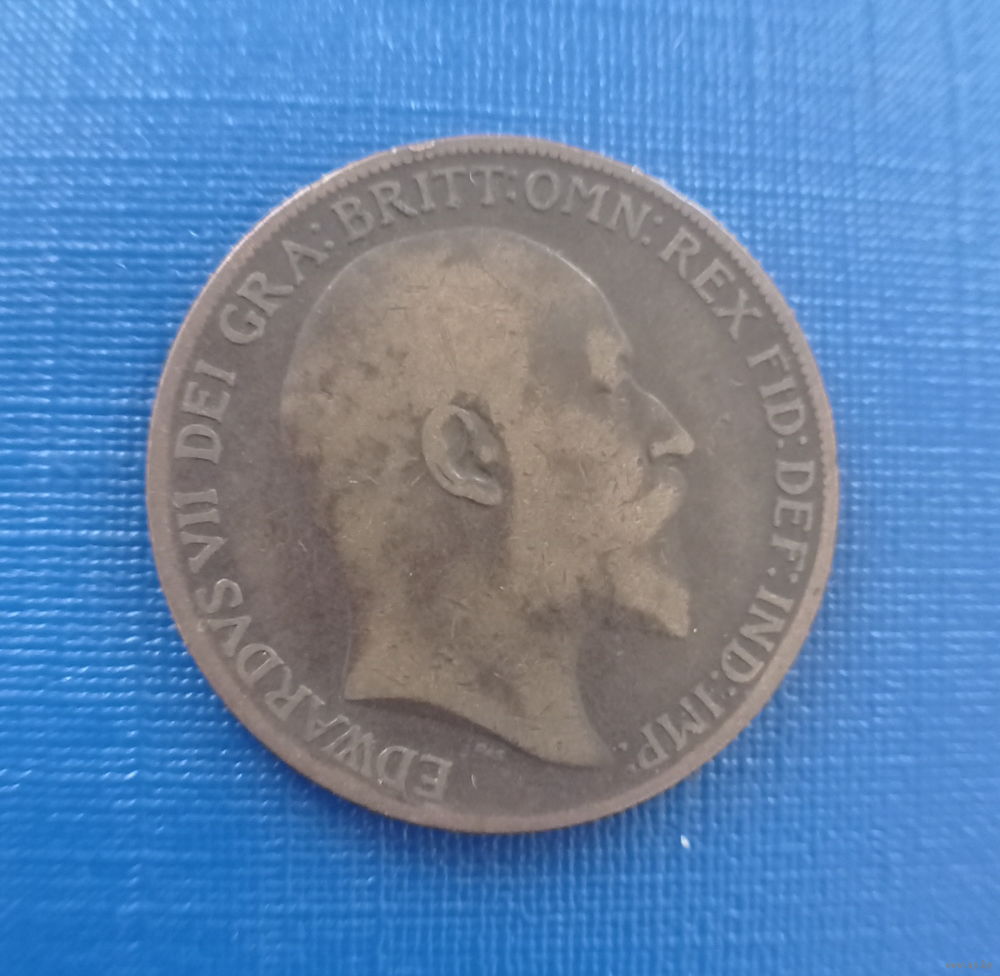 Великобритания Британия Англия 1 пенни 1910 год король Эдуард VII последний год чекана