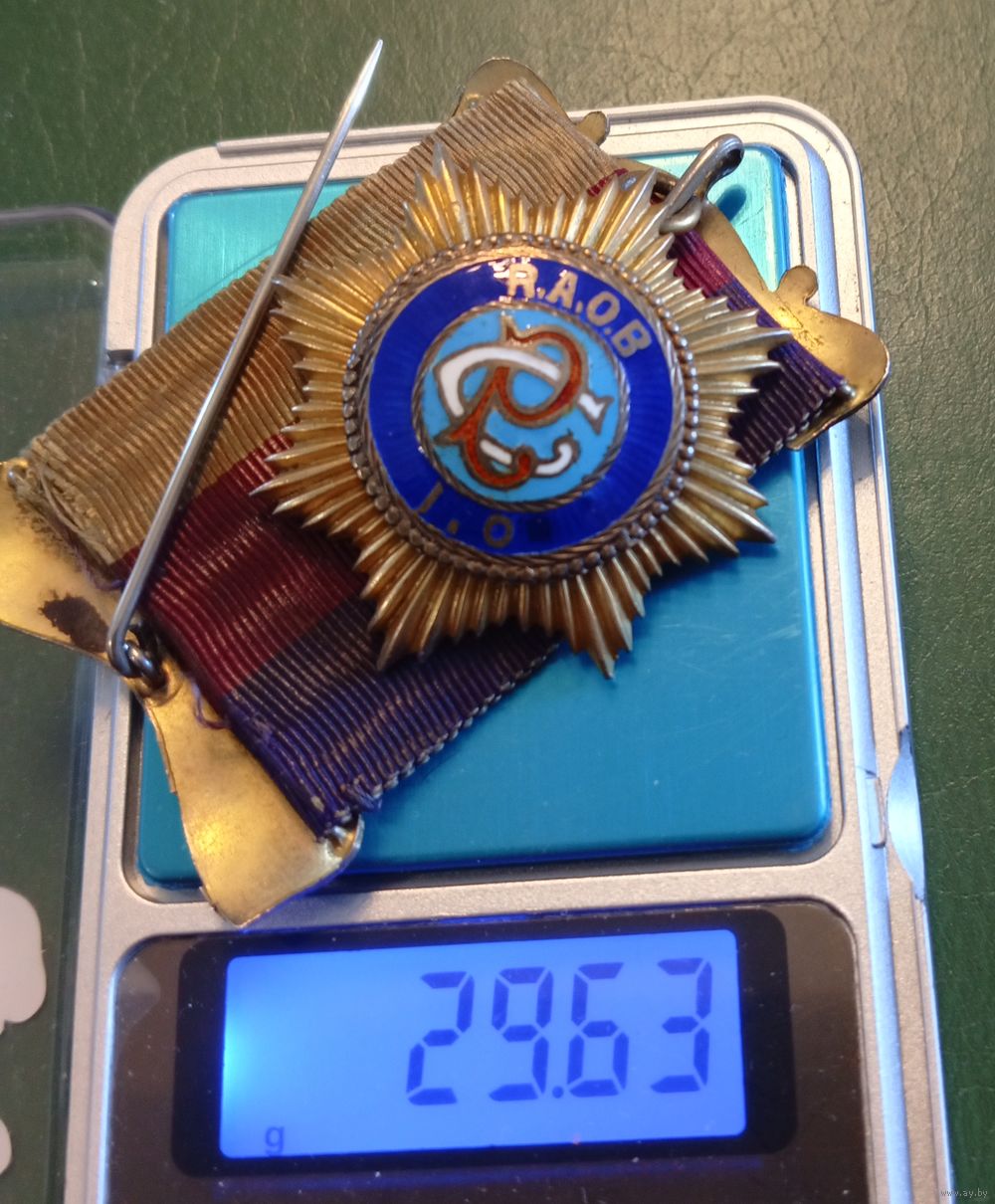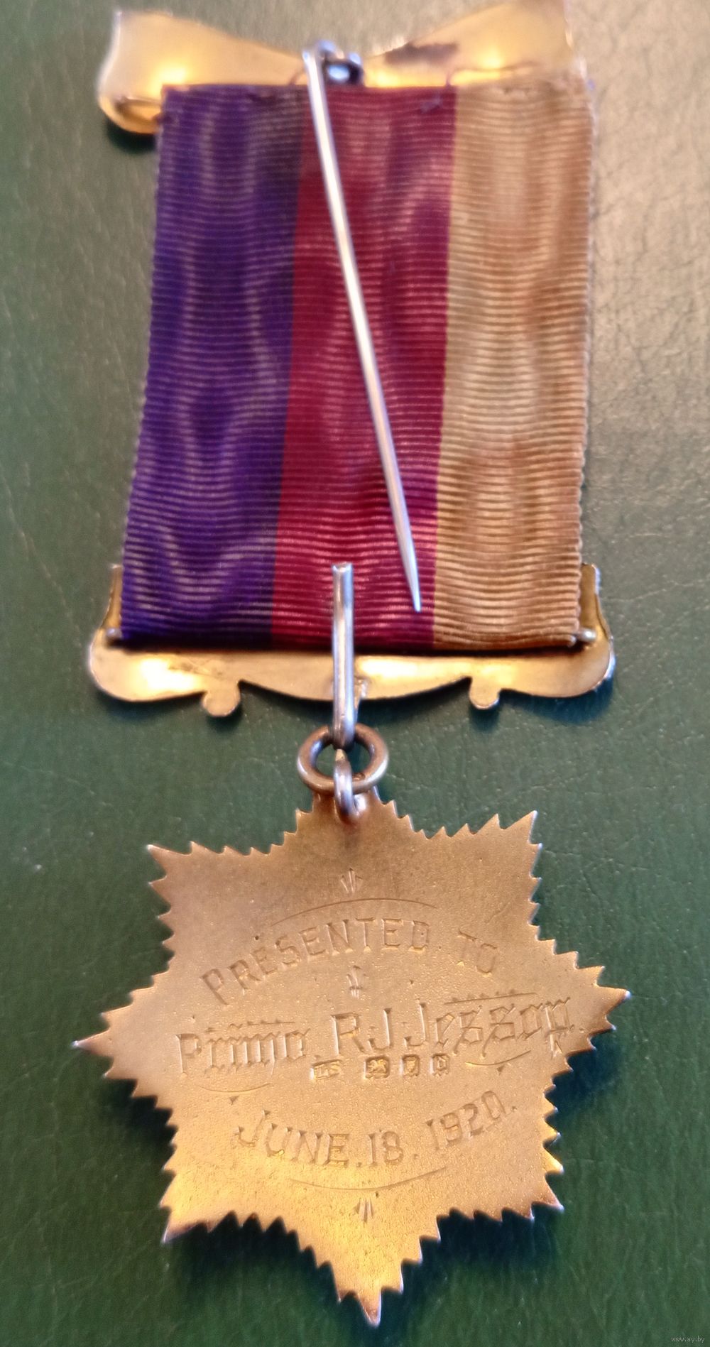 Масонская медаль Королевского допотопного ордена буйволов (RAOB), гравировка на обратной стороне на англ:вручена Primo Р. Дж.. Джессопу