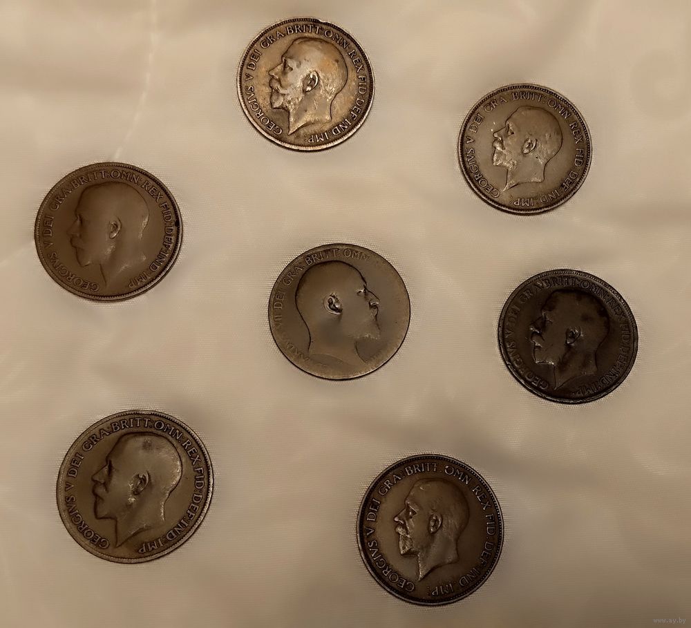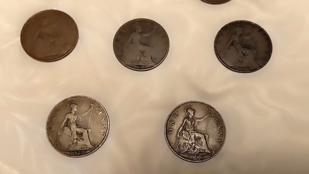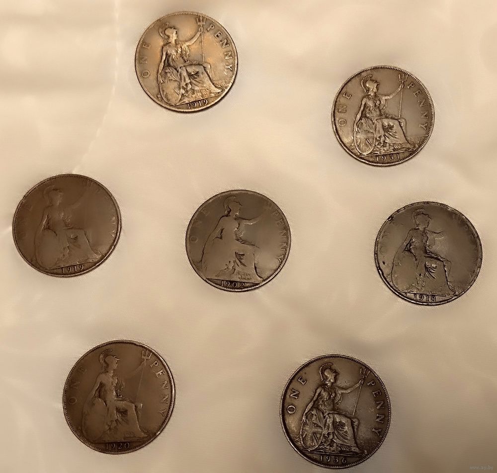 Великобритания монеты 1 пенни разных годов бронза 7 штук лотом. Состояние на фото.