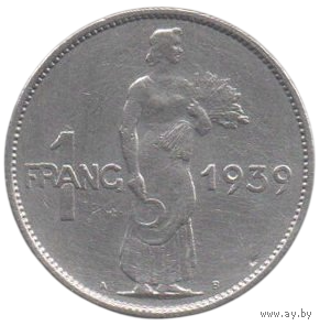 Великое Герцогство Люксембург. 1 франг ( франк ) 1939. Великая Герцогиня Шарлотта Адельгонда Элиза Мария Вильгельмина Нассау-Люксембургская. Нечастая.