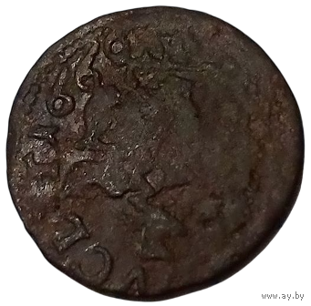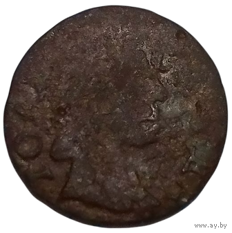 Великое Княжество Литовское, Русское и Жемайтское и Иных Земель. 1 шэляг (солид) 1666. Герб Крышпин (голова оленя, Ковно). Пагоня.