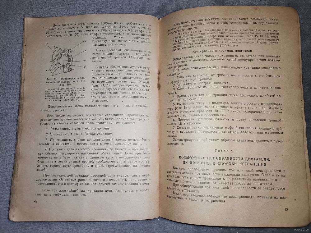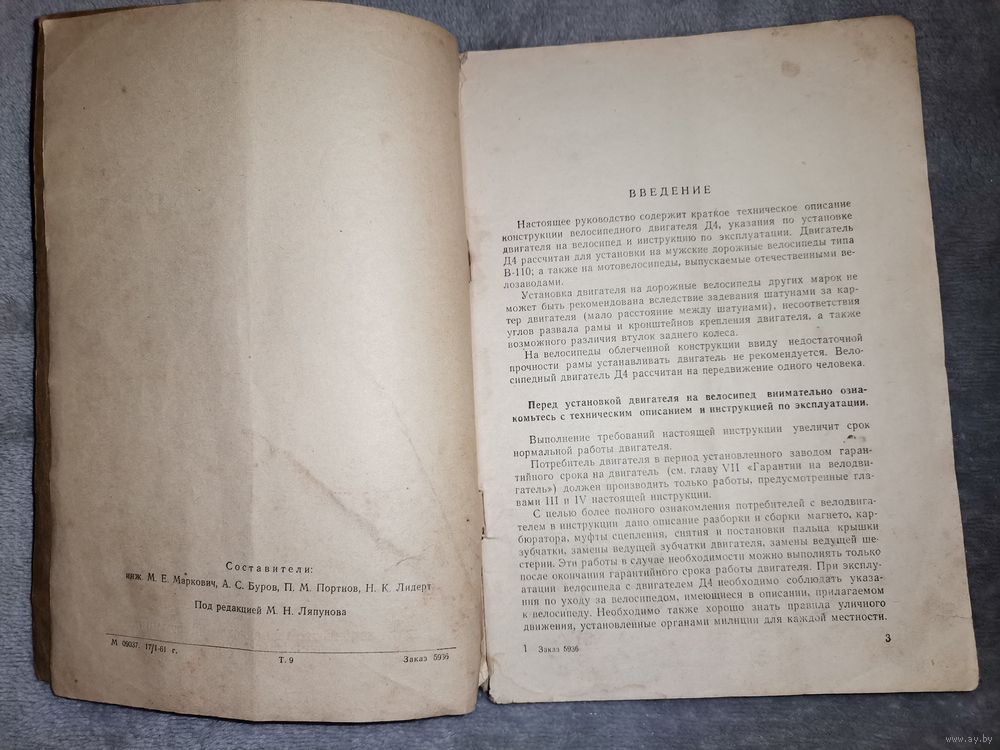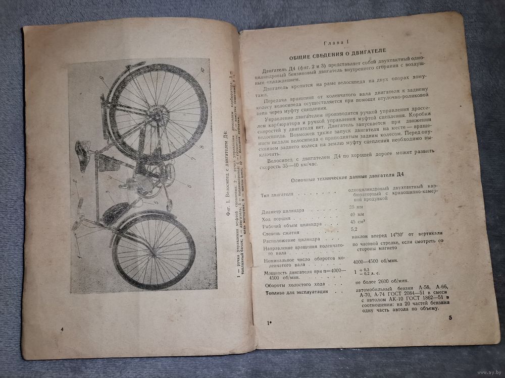 Велосипедный двигатель Д4. 1961г. Техническое описание и инструкция по эксплуатации. Состояние на фото. Отправка только Европочтой