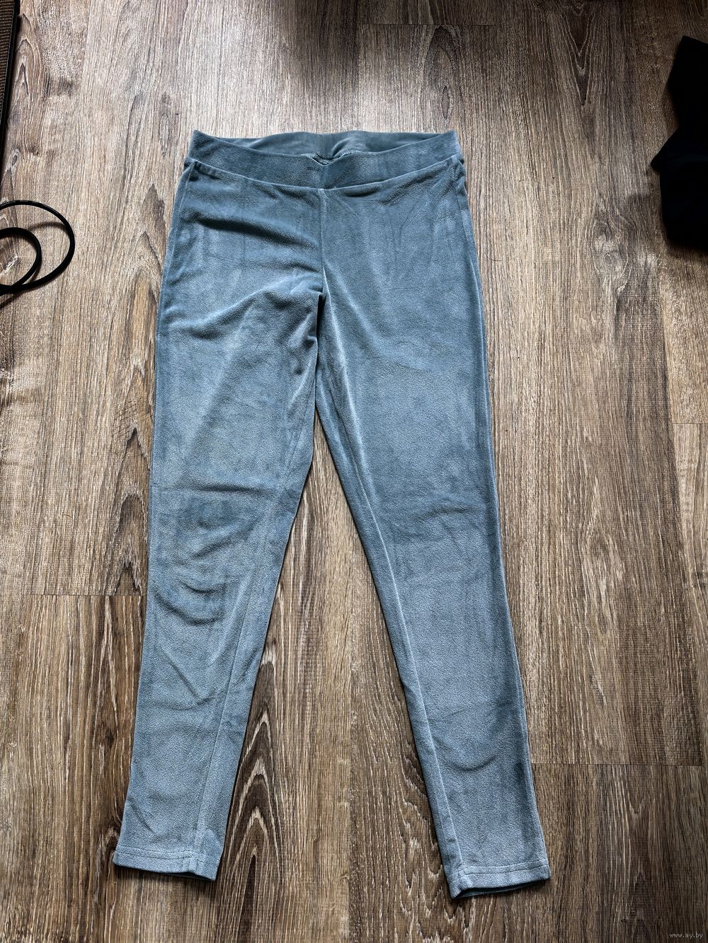 Легинсы велюровые светло-бирюзового цвета, средней плотности, хорошо тянутся (в составе 6% эластана).