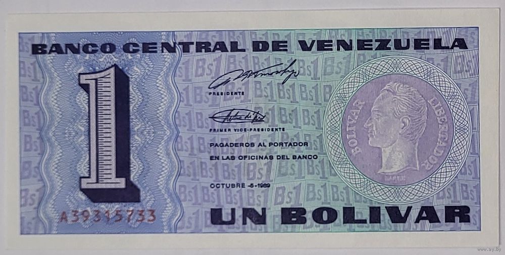 1 боливар 1989 г. P68a, серия A.