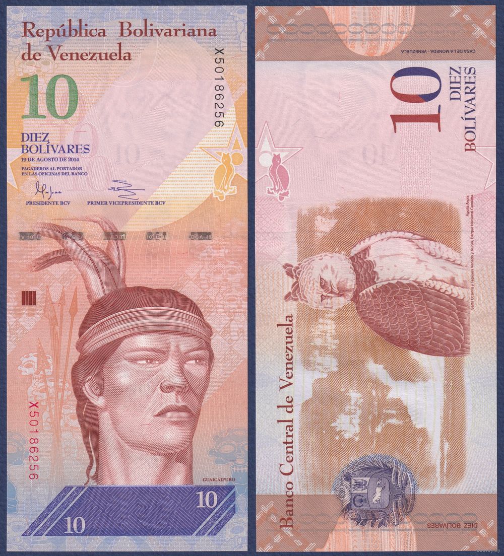 Венесуэла, 10 боливаров 2014 г., P-90e, UNC