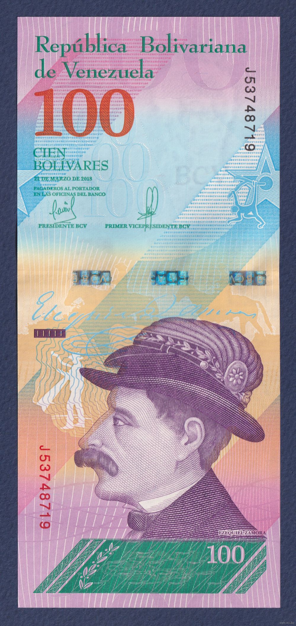 Венесуэла, 100 боливаров 2018 г., P-106 (22.03.2018) (номинация IBNS 2018, политик Самора Эсекиель), UNC