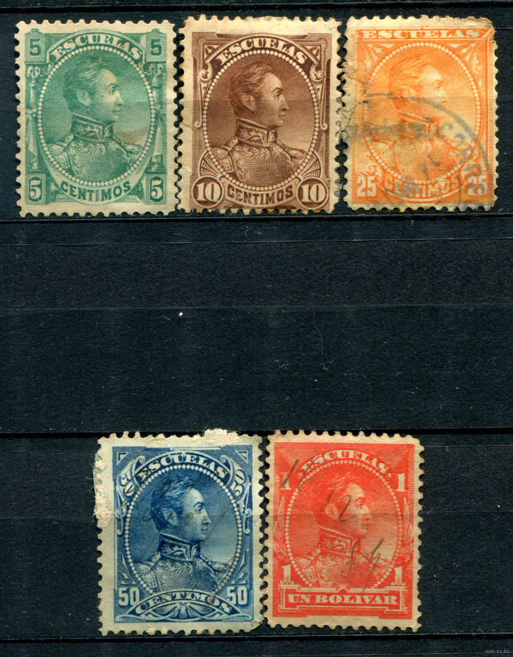 Венесуэла - 1882/88г. - Симон Боливар - 5 марок - гашёные, номинал 25 с разрывом слева. #4-W1-117-B-1