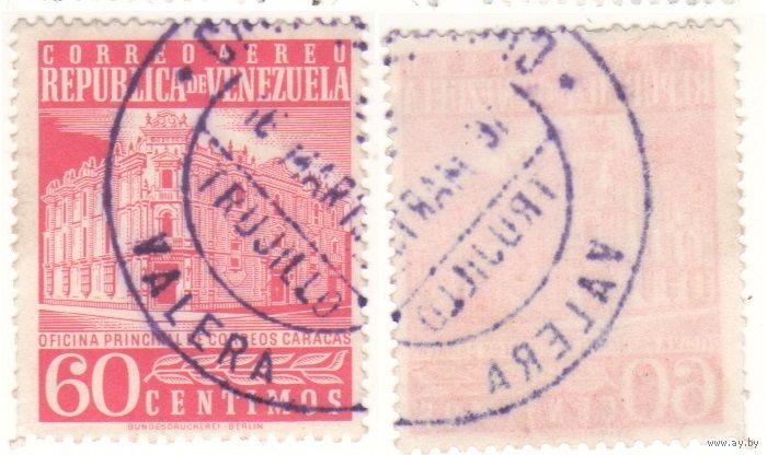 Венесуэла 1958-05 1238 Correo Aereo - Каракас Центральное почтовое отделение (воздушная почта) из серии 2 маркок 60c (m09)