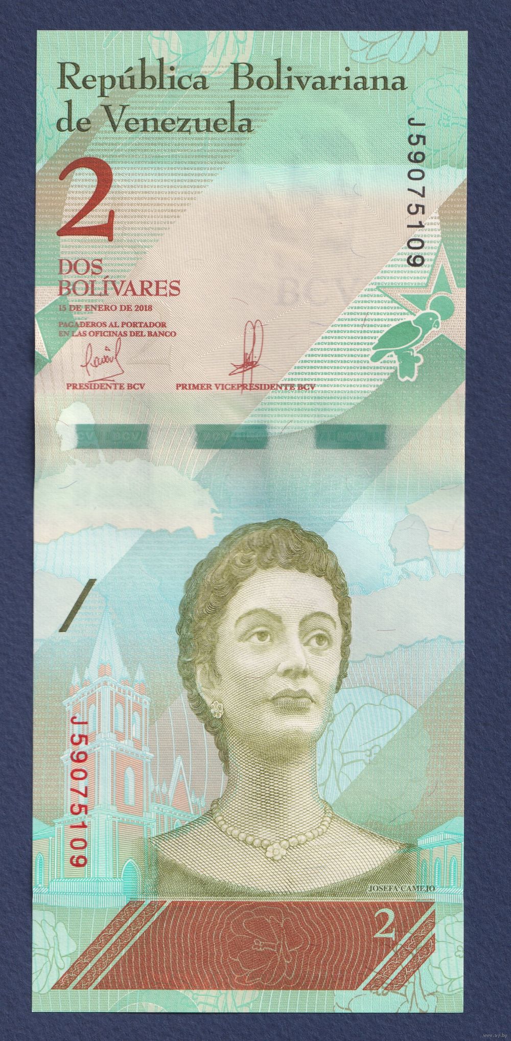 Венесуэла, 2 боливара 2018 г., P-101, UNC