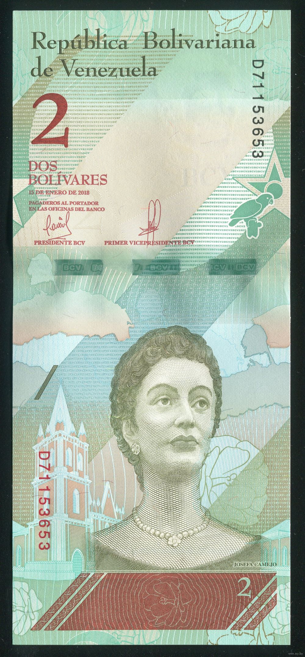 Венесуэла 2 боливара 2018 г. Р101. Серия D. UNC