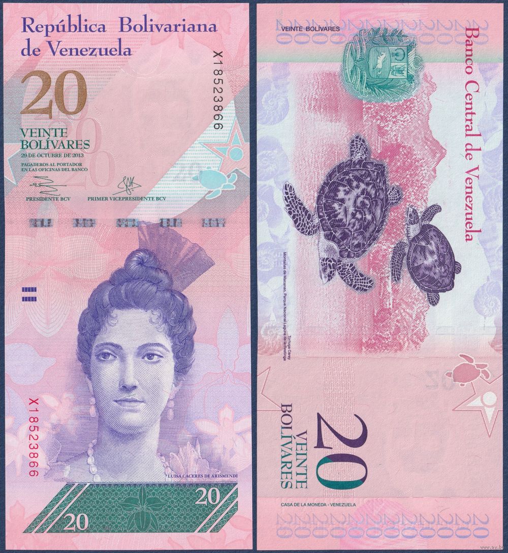 Венесуэла, 20 боливаров 2013 г, P-91f (X, Луиза Касерес де Арисменди, ястребиная черепаха), UNC