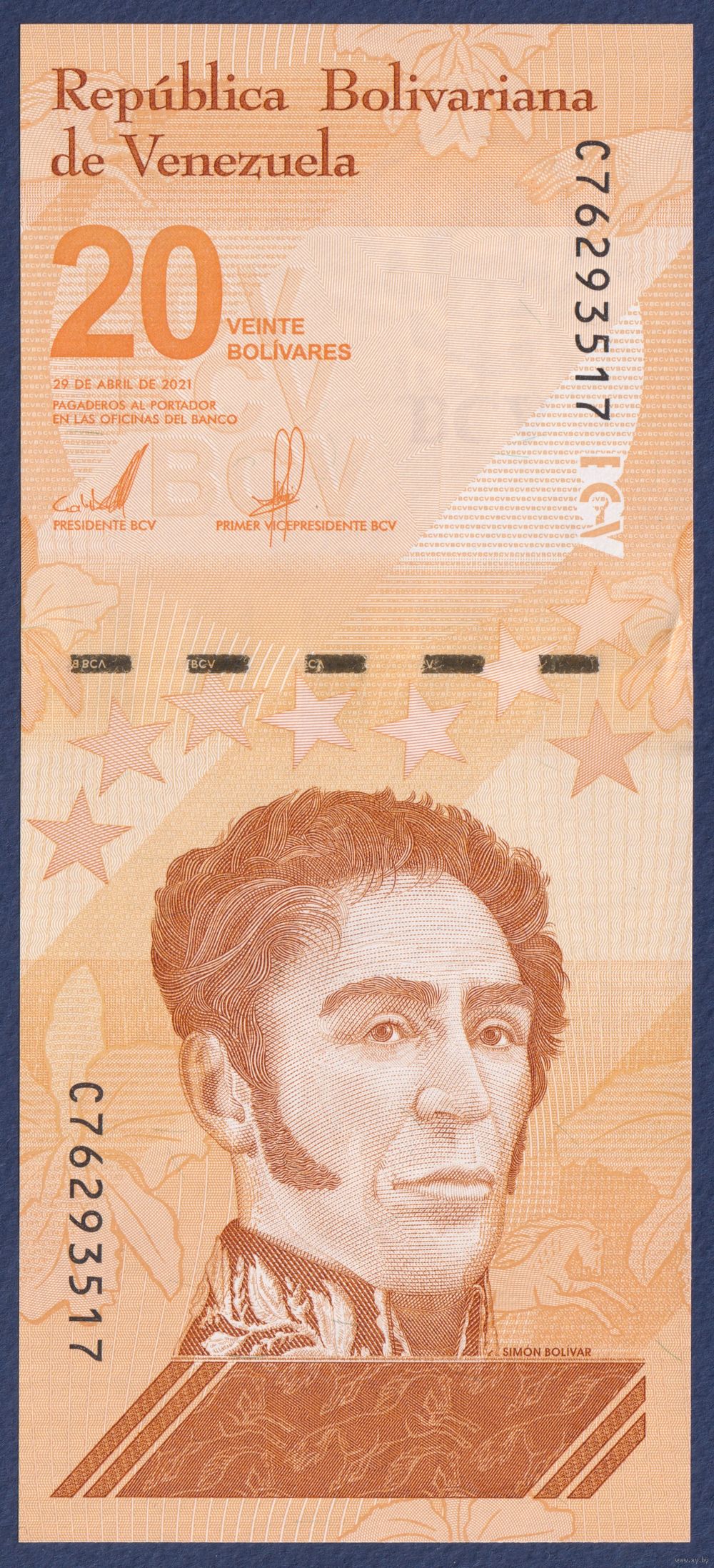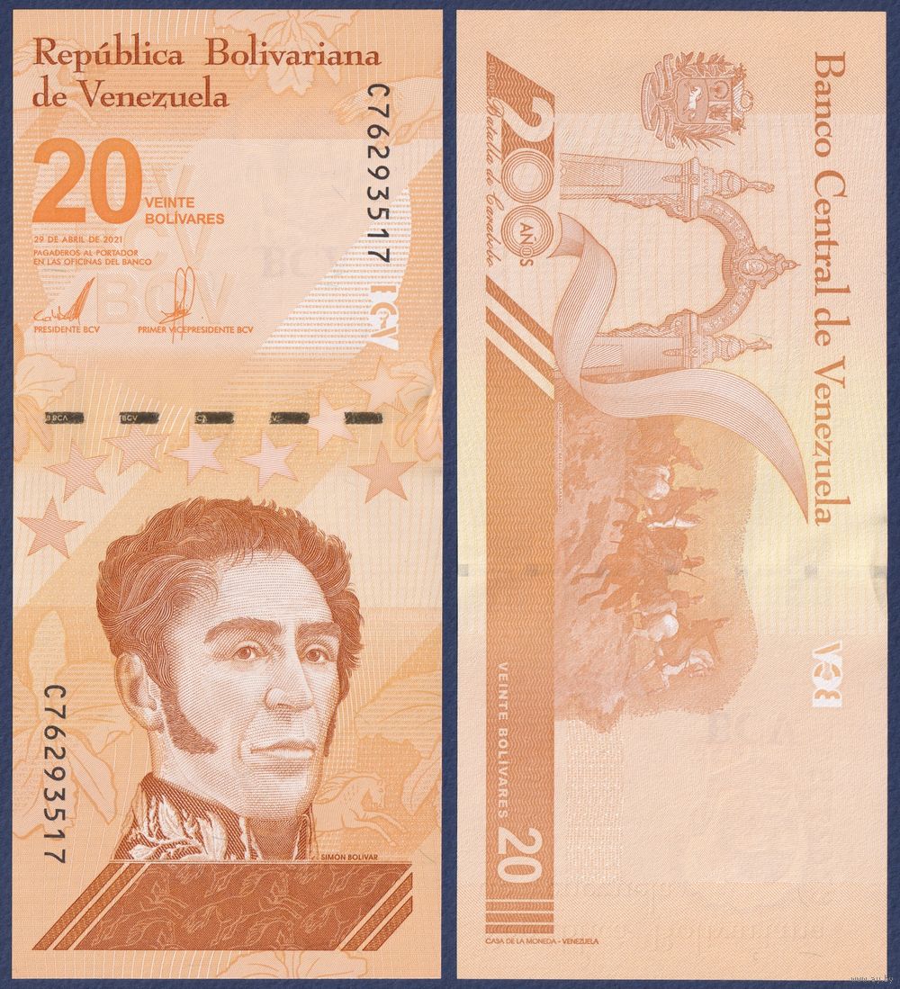 Венесуэла, 20 боливаров 2021 г., P-W117 (C, генерал Симон Боливар), UNC