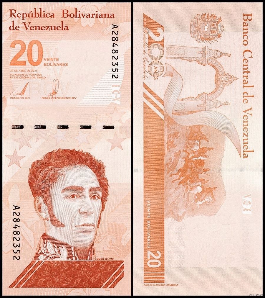 Венесуэла 20 боливаров образца 2021 года UNC pw117 серия А