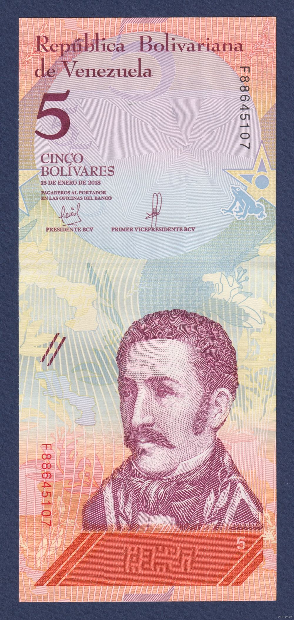 Венесуэла, 5 боливаров 2018 г., P-102, UNC