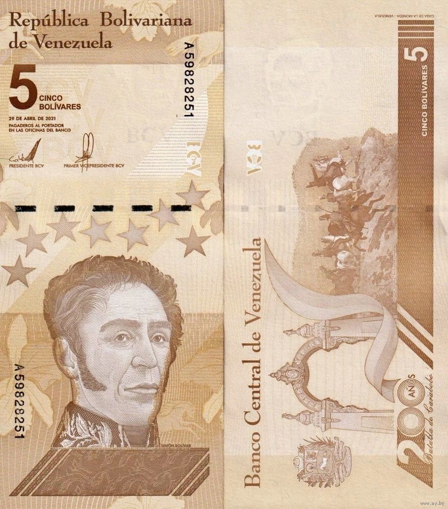 Венесуэла 5 боливаров образца 2021 года UNC pw115