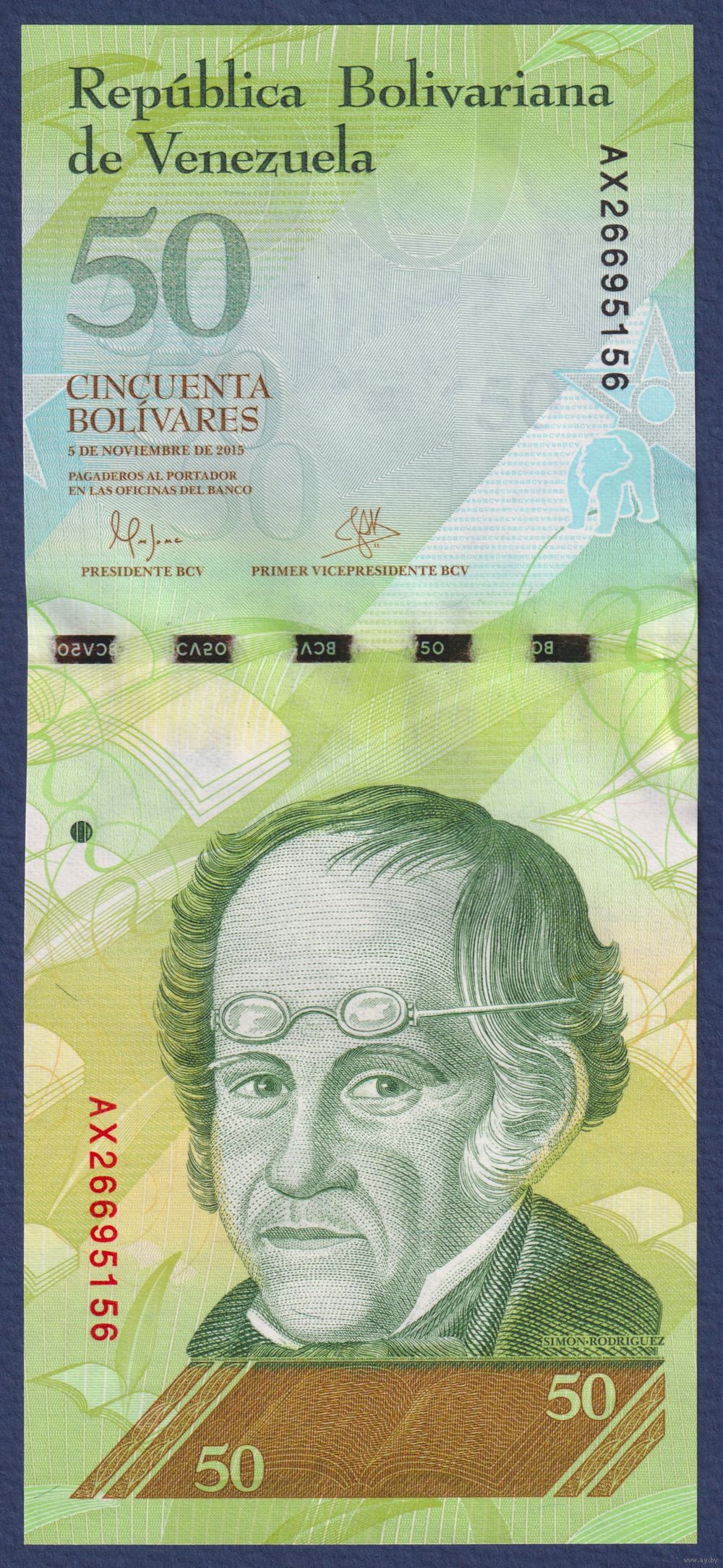 Венесуэла, 50 боливаров 2015 г., P-92k (05.11.2015, философ Симон Родригес), UNC