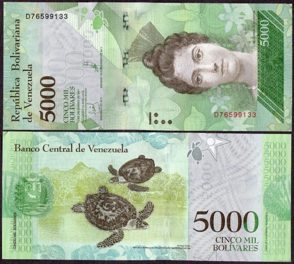 Венесуэла 5000 боливаров образца 2017 года UNC p97c