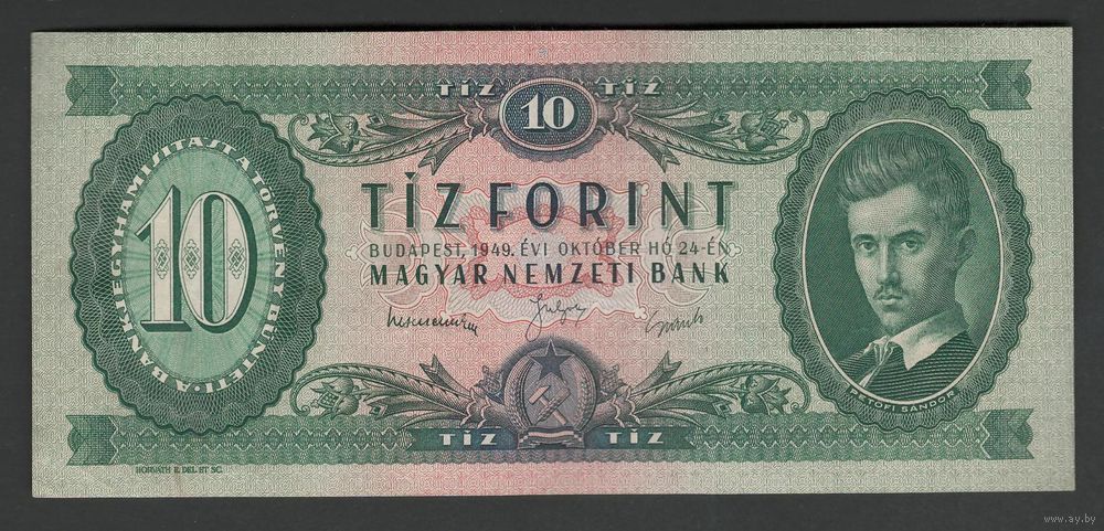 Венгрия 10 форинтов 1949 года. Тип Р-164. Состояние XF+