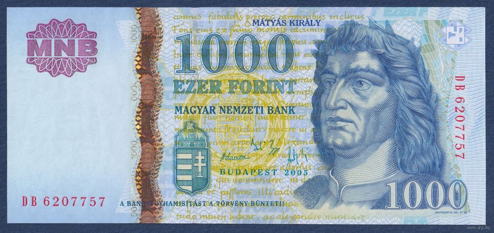Венгрия, 1000 форинтов 2005 г, P-195a (DB, король Матьяш I Корвин), UNC