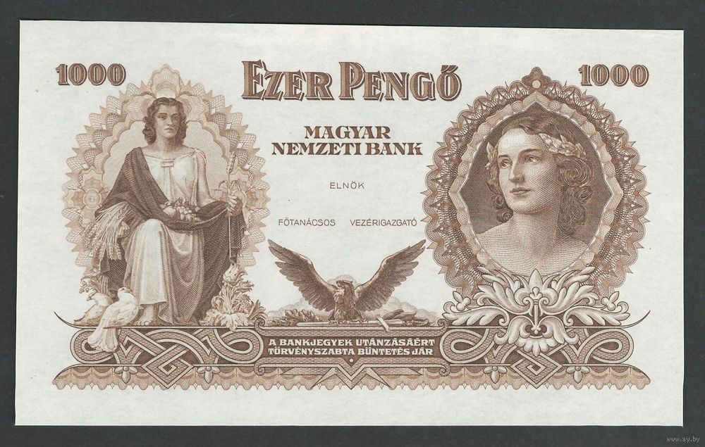 Венгрия 1000 пенго образца 1945. Тестовая банкнота. Состояние UNC
