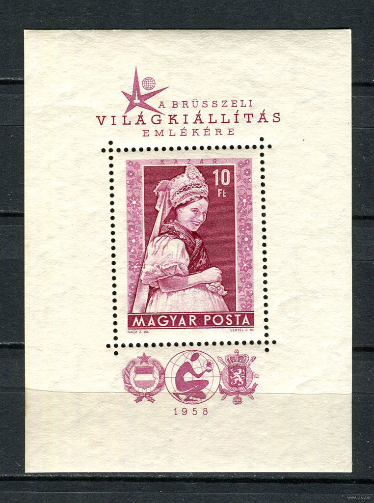 Венгрия - 1958 - Национальные костюмы. Всемирная выставка - [Mi. bl. 27A] - 1 блок. MNH. (Лот 79HR)-TG3P9