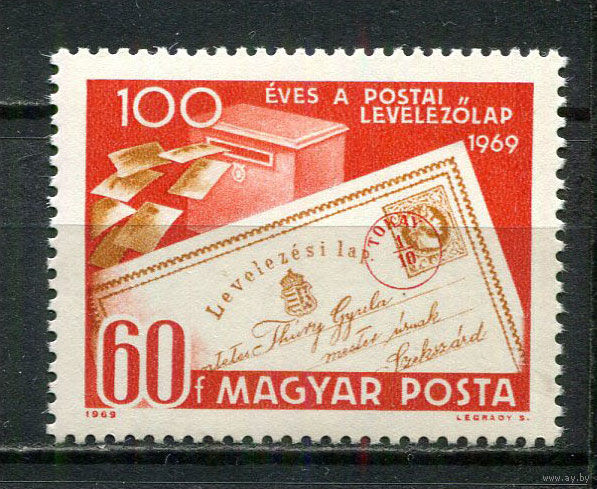 Венгрия - 1969 - Первая венгерская почтовая открытка - [Mi. 2543] - полная серия - 1 марка. MNH. (Лот 37HZ)-TG3P48