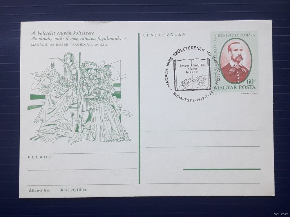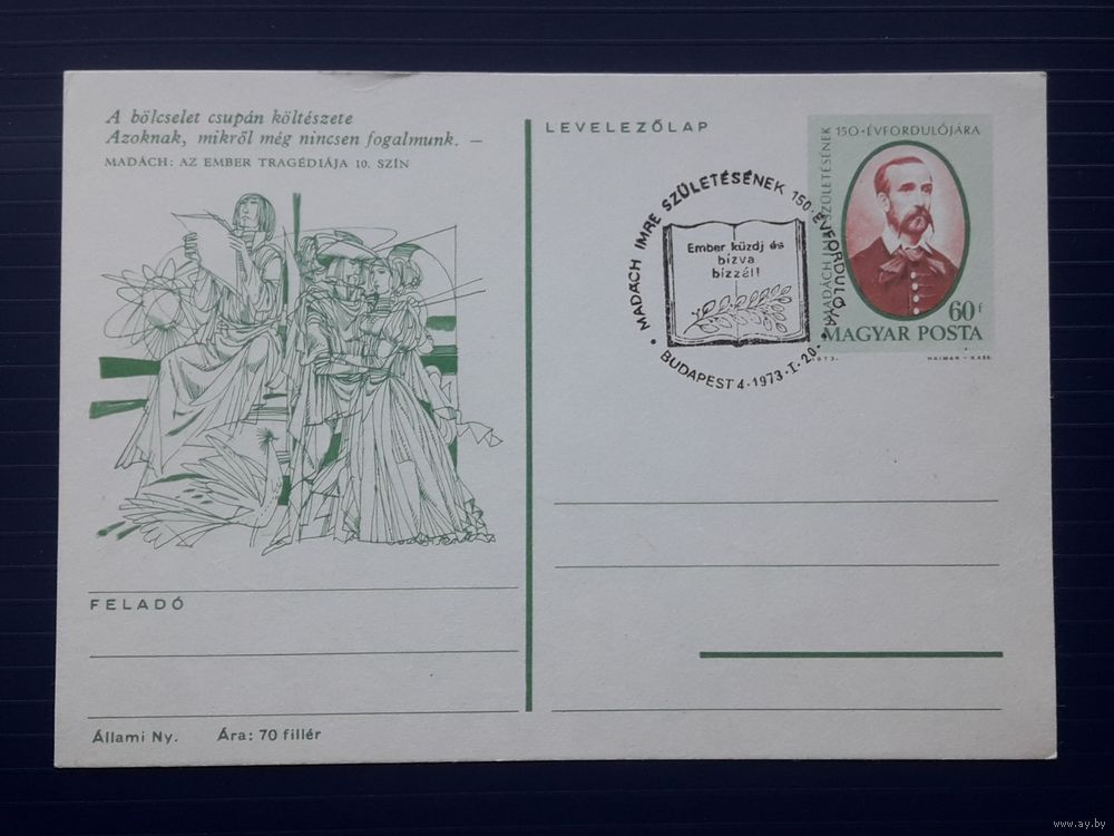 Венгрия 1973г. ХМПК 150 лет со д.р. венгерского поэта,философа и драматурга Имре Мадача.СГ (2).