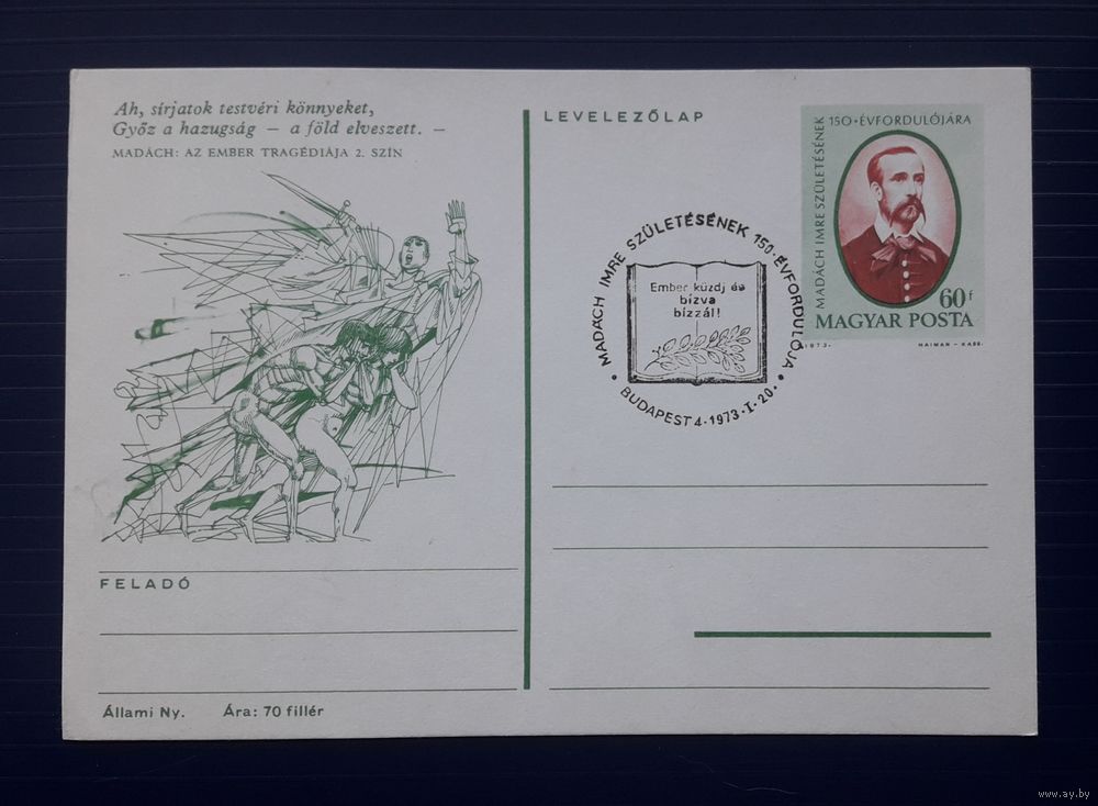 Венгрия 1973г. ХМПК 150 лет со д.р. венгерского поэта,философа и драматурга Имре Мадача.СГ.