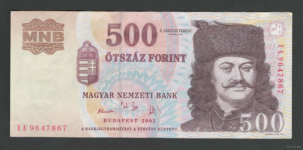 Венгрия 500 форинтов 2002 года. Тип Р-188b. Состояние XF+