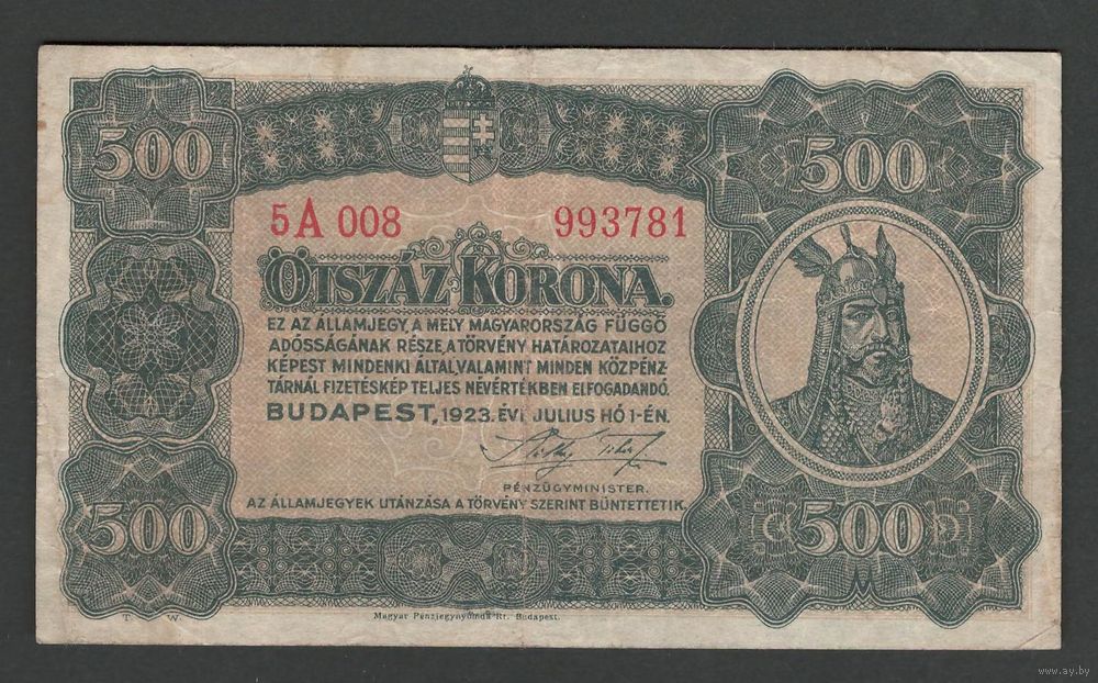 Венгрия 500 крон 1923 года. Тип Р-74a. Состояние XF-