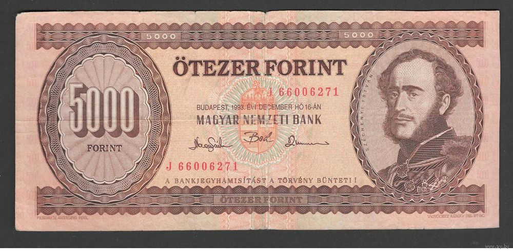 Венгрия 5000 форинтов 1993 года. Тип Р-177c. Состояние VF-