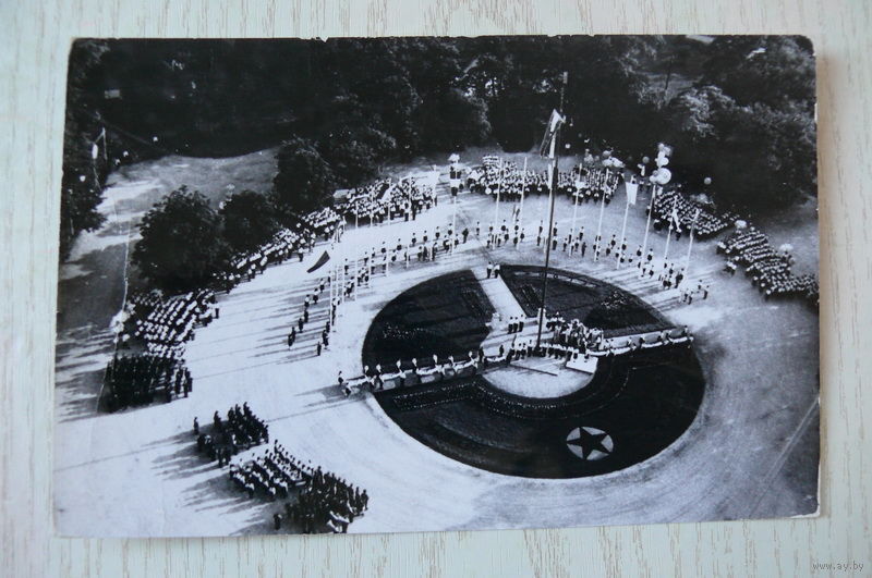 Венгрия. Будапешт. Чиллеберцкий лагерь пионеров. Поднятие флага; 1979, подписана, п/п, марка.