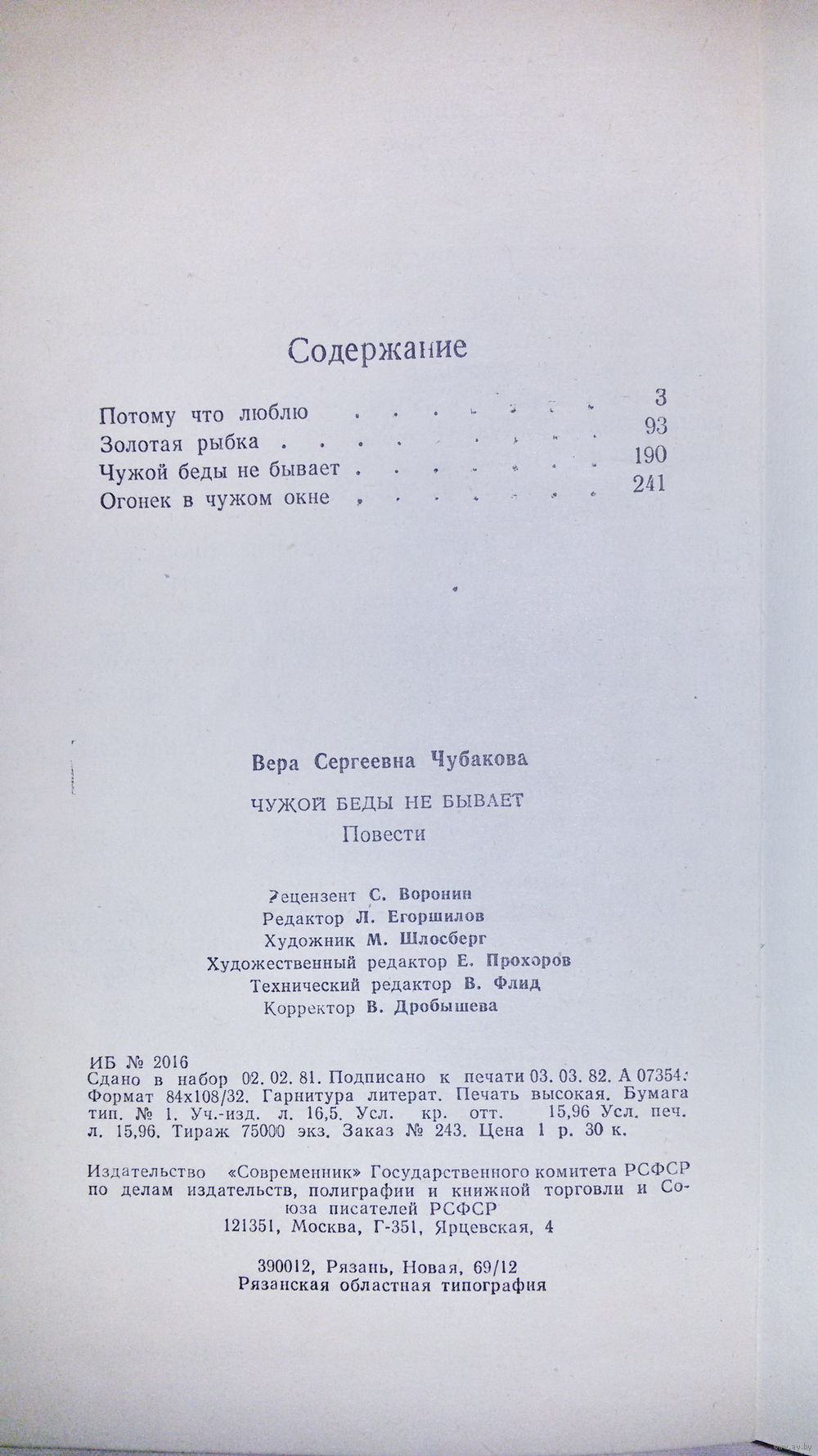 Вера Чубакова повести "Чужой беды не бывает", Москва, Современник, 1982г, 303с.